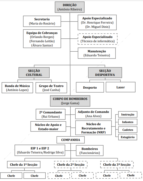Os elementos que compõem o Corpo de Bombeiros integram os seguintes quadros de pessoal: